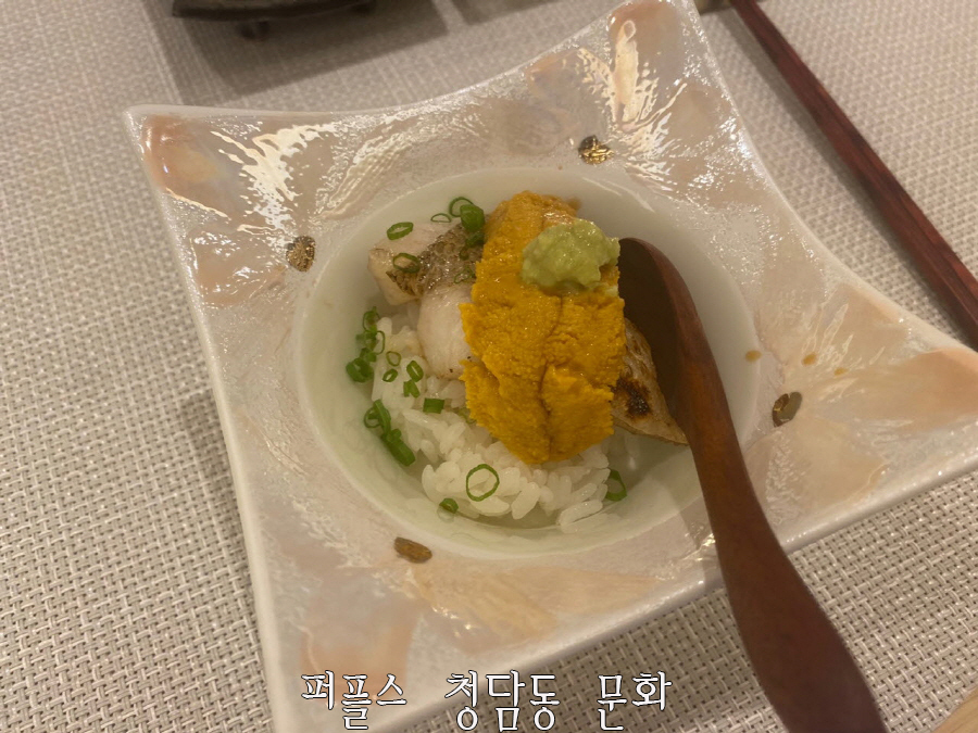 오마카세 맛집답게 금태의 기름진 맛과 우니에 곁들여진 와사비 맛으로 고소함을 더욱 극대화 시켜줍니다.