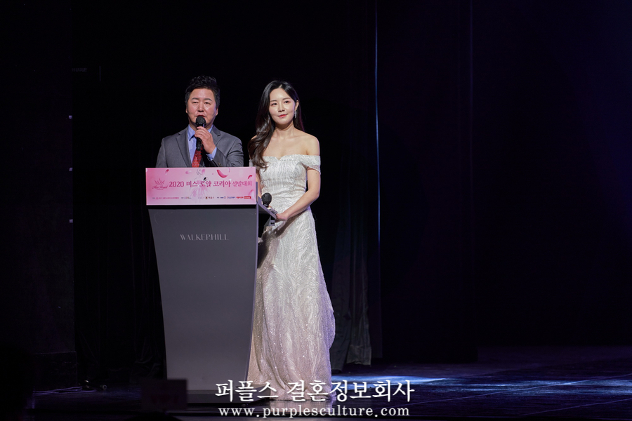 드디어 본격적으로 강남결혼정보회사 퍼플스가 주관한 '2020 미스로얄코리아' 본선 대회가 막이 올랐습니다. 서울 그랜드 워커힐 호텔 시어터홀에서 개최되었으며 사회는 배우 김덕현과 신서영 아나운서가 맡아주었습니다.
