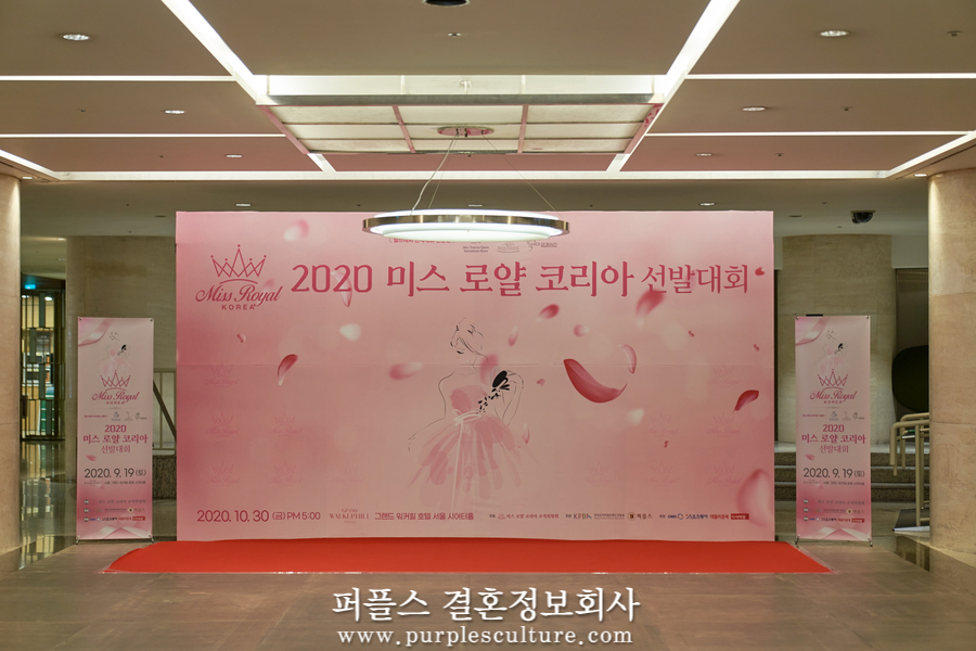 강남결혼정보회사 퍼플스가 주관한 '2020 미스로얄코리아'는 지난 8월 24일부터 서류전형, 예선 면접을 거쳐 2박 3일간의 교육과 합숙이 진행되었으며, 그 안에서 공정한 심사를 거쳐 선발된 참가자들 만이 오늘 본선 무대에 오를 수 있었습니다.