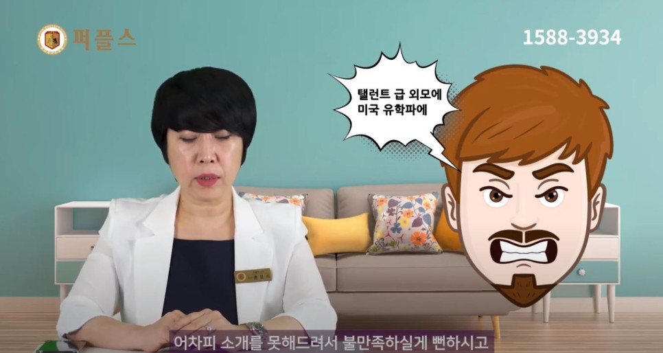 오늘 '퍼플스 청담동 문화'에서는 상류층 결혼정보업체 '퍼플스TV' 유튜브 콘텐츠 '결혼정보회사가입 절대 안되는 사람들은?'에 대해 알아보았습니다. 이외에도 더 다양한 상류층 연애결혼 콘텐츠가 궁금하신 분들은 유튜브에 '퍼플스 TV'를 검색해보시기 바라며 홍윤미 VIP 커플매니저와 상담을 희망하시는 분들은 아래 전화번호 혹은 1:1 무료상담 요청하기를 클릭해보시기 바랍니다.