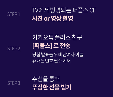 지금부터 경품이벤트! '퍼플스 TV CF 시청 인증샷 이벤트'에 대해 자세히 알아보도록 할까요?