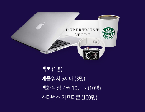 상류층 결혼정보회사 퍼플스 TV CF 시청 인증샷 이벤트는 경품이벤트인 만큼 푸짐한 상품도 준비되어 있는데요. 먼저, 추첨을 통해 100명에게는 스타벅스 기프티콘을 드릴 예정이며 10명에게 백화점 상품권 10만 원권, 3명에게 애플워치 6세대 그리고 1명에게 맥북을 증정할 예정이니 푸짐한 퍼플스 경품이벤트에 많은 관심 부탁드립니다.