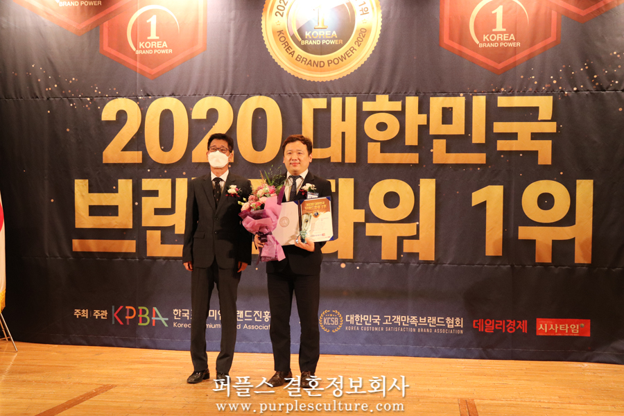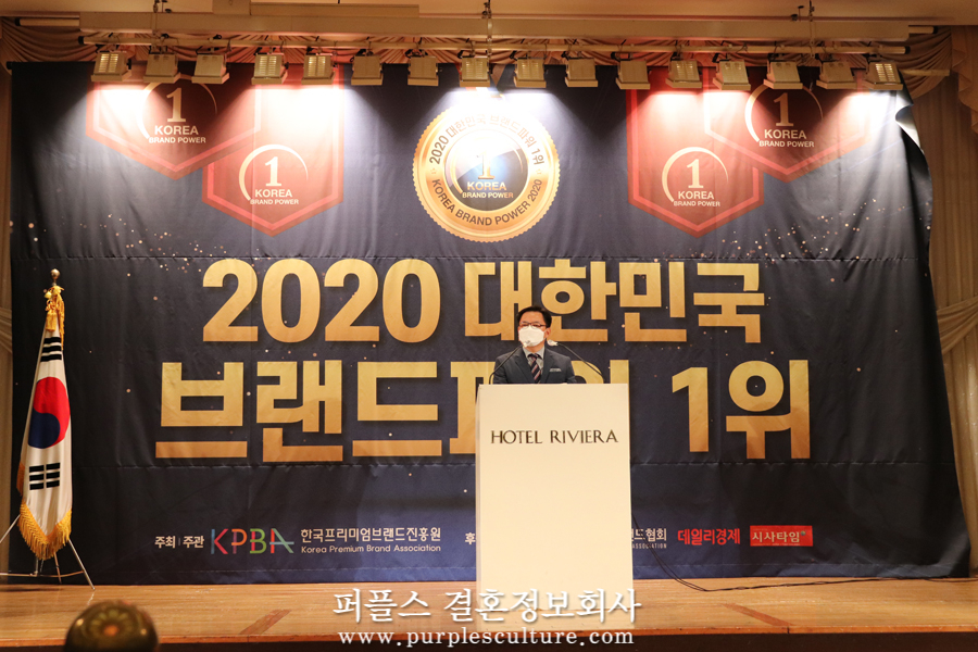 수많은 미혼남녀에게 고품격 중매결혼 서비스를 제공하고 있는 상류층 결혼정보회사 퍼플스가 '2020 대한민국 브랜드파워 1위'를 수상하는 영광을 안았습니다. 국내를 대표하는 유명 기업들이 선정된 저명한 시상식이었기에 더욱 뜻깊은 자리였는데요. 오늘 이 시간에는 공무원결혼으로 유명한 퍼플스의 시상식 현장을 전해드리겠습니다.