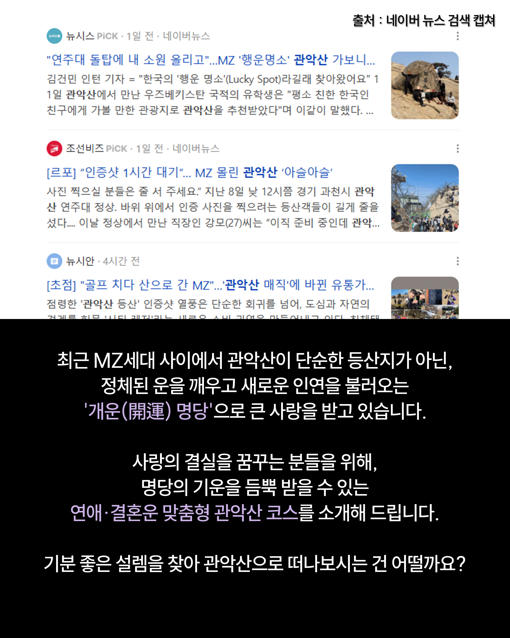 연애·결혼운 맞춤형 관악산 코스를 소개해 드립니다.