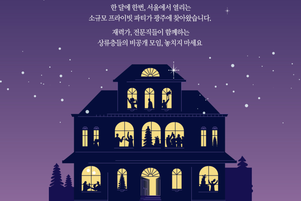 이번 1월 광주 미팅파티는 코로나 바이러스로 인해 소규모로 프라이빗하게 진행되며 다양한 재력가, CEO, 전문직 회원분들이 참여하는 상류층 비공개 모임이라고 볼 수 있습니다.