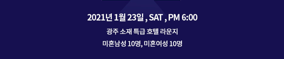 그렇다면, 광주 노블레스 결혼정보업체 퍼플스의 1월 '광주지사 오픈 기념 프라이빗 파티'에 관심 있는 분들을 위해 자세한 설명을 도와드리도록 하겠습니다. 1월 광주 미팅파티는 2021년 1월 23일 토요일 저녁 6시 광주 소재 특급 호텔 라운지에서 진행되며 미혼 남성과 미혼 여성 각 10명이 참석할 예정입니다. 광주 노블레스 결혼정보업체 퍼플스 파티에 참가하는 회원분들은 모두 결혼을 전제로 진지한 만남을 위해 참석해 주고 계시며 소규모 파티일수록 인연을 찾을 가능성이 매우 높기에 성혼을 희망하시는 분들은 퍼플스 광주 미팅파티를 추천드립니다.