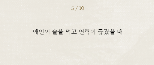 연인이 술을 먹고 연락이 끊어졌을 때 여러분은 어떤 반응이신가요? 걱정이 되지만 술버릇을 생각하고 침착하는 편이신가요? 아니면 초조한 편이신가요? 평소 연애 유형이나 성격에 따라서도 다를 것 같은데요!