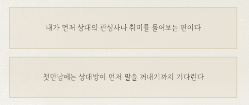 -내가 먼저 상대의 관심사나 취미를 물어보는 편이다
