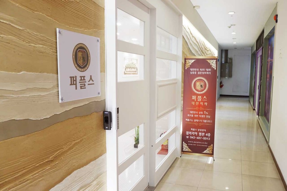 결혼정보업체 퍼플스는 2001년 설립된 최초의 상류층 결혼정보회사이며, 약 20년간 전문직, 재벌가, 명문가의 성혼을 진행하고 있습니다. 현재 서울 청담 본사를 비롯하여 부산, 대구, 대전 등에 지사를 운영하여 지방에 거주하는 미혼남녀 분들을 위한 성혼 서비스도 함께 제공하고 있으며, 다가올 12월에는 광주지사를 오픈할 예정입니다. 광주 및 호남 지방에서도 퍼플스만의 상류층 성혼 서비스를 제공받으실 수 있으니 많은 관심 부탁드립니다.
