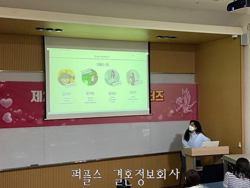 두 번째로 발표를 진행한 2조는 '퍼플스 브랜드 인지도 제고를 위한 영상'을 제작하였습니다. 창의적인 아이디어를 구현해낸 영상 편집으로 전체적인 결과물의 완성도를 높였으며 팀워크가 돋보였던 팀이었습니다.