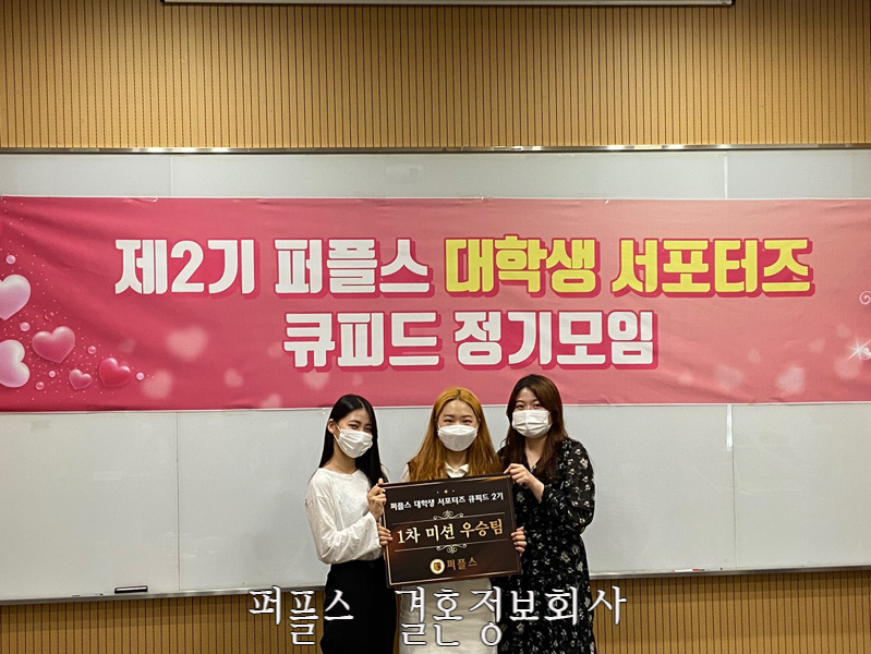 대학생 마케팅 대외활동과 결혼정보 서비스에 관심이 있는 청년들을 위해 퍼플스에서는 대학생 서포터즈 2기를 진행하게 되었습니다. 다양한 미션 수행을 통해 마케팅 실무 경험을 쌓을 수 있는 퍼플스 서포터즈 제2기가 첫 번째 정기모임을 가지게 되었으며 준비한 팀 미션 결과물을 발표하고 우수 활동자와 우수 팀을 선정해보았는데요. 오늘 퍼플스 청담동 문화에서는 지난해 진행된 퍼플스 서포터즈 1기 정기모임에 이어 '대학생 마케팅 대외활동, 퍼플스 서포터즈 제2기 정기모임 현장'을 공개하도록 하겠습니다.