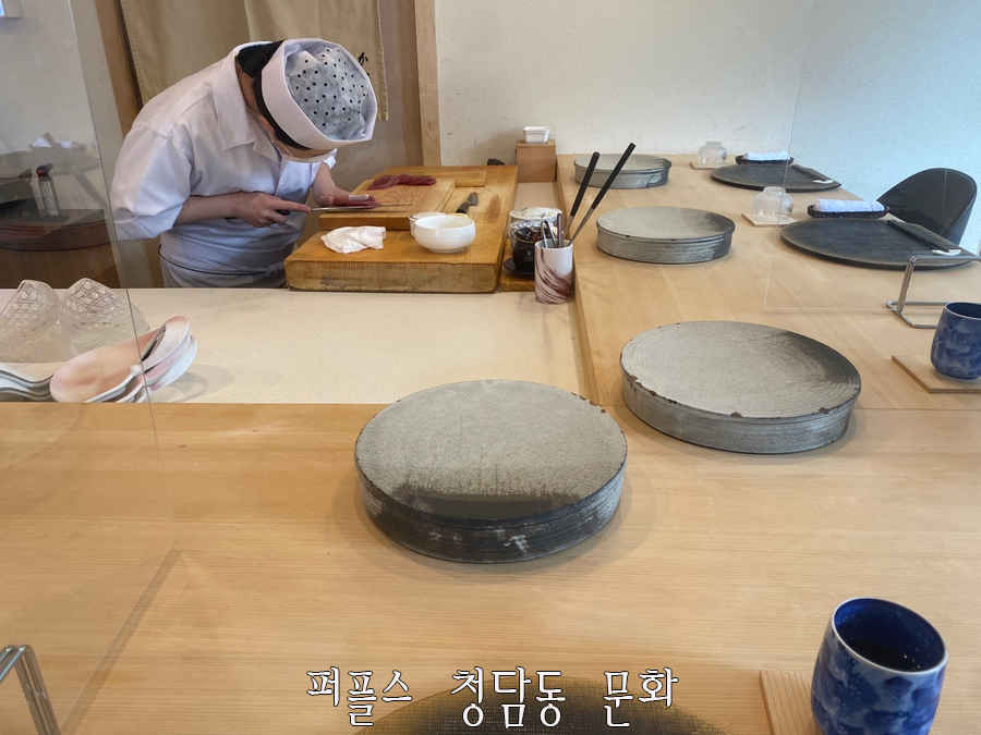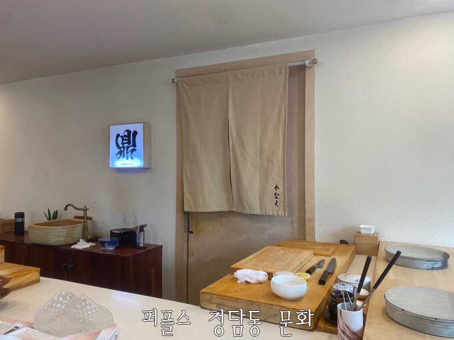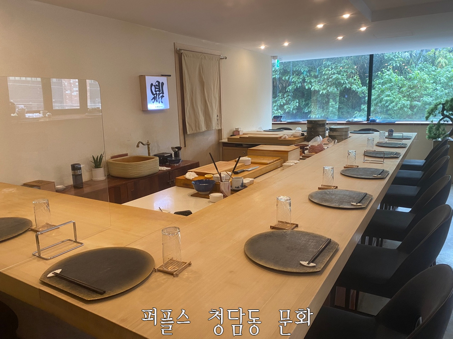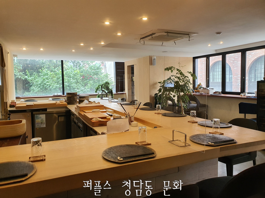 '스시카나에'는 런치 1부, 2부와 디너 1부, 2부로 나눠져 있으며 시간 당 12명의 손님만 받고 있습니다. 퍼플스 청담동 문화는 런치 1부에 방문하였는데 여유있게 방문했음에도 정갈하게 정리된 테이블이 준비되어 있었으며, 고즈넉한 분위기로 인해 기대가 많이 되는 식사였습니다.
