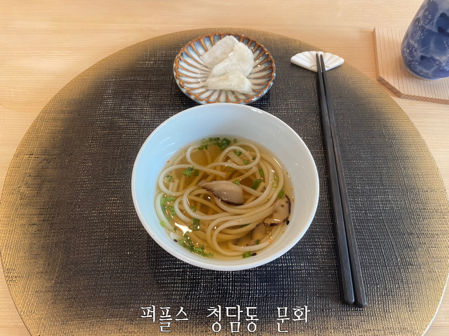 고토 우동은 표고버섯 향과 고춧가루가 살짝 들어간 국물이 입안을 개운하게 만들어 주었으며 면발의 쫄깃한 식감이 인상적이었습니다.