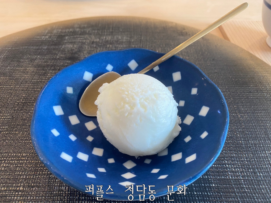 디저트로는 계란구이와 소금 아이스크림이 제공되었는데, 부드러운 식감의 계란구이와 단짠의 조합인 소금 아이스크림은 식사의 마지막을 깔끔하게 만들어 주었습니다.