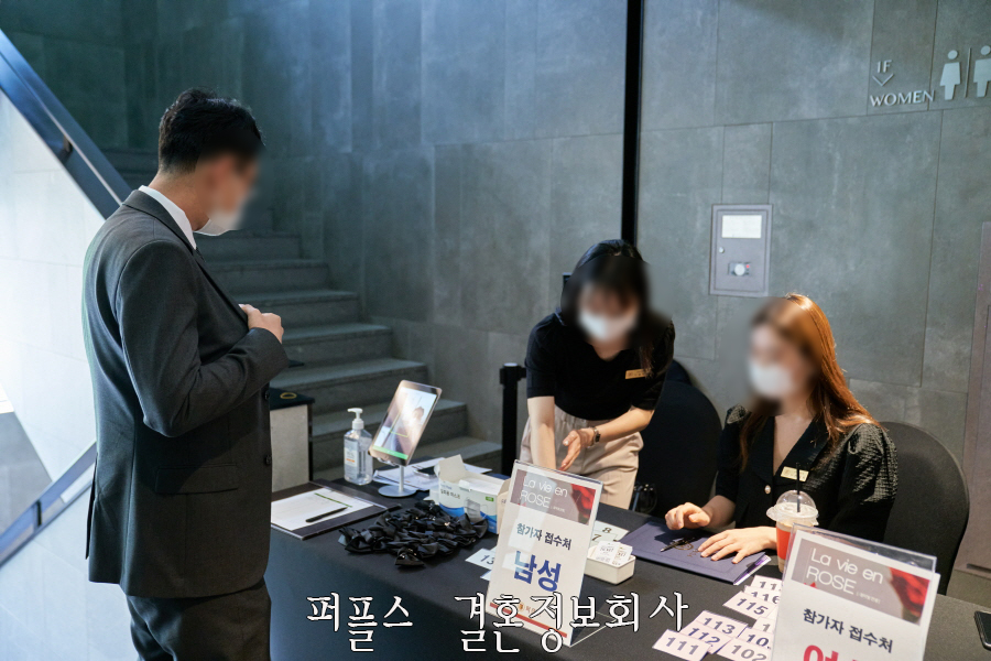 시작 한 시간 전부터 하나둘씩 모습을 드러내는 회원님들의 모습을 볼 수 있었습니다. 오늘 파티는 의사, 회계사, 자산가, 사업가, 교사, 대기업 임원 등 이혼 후 재혼을 희망하는 돌싱 회원 40여 명이 참석하였으며, QR 체크인, 체온 측정, 손소독제 사용, 마스크 착용 등 철저한 방역수칙을 준수하며 진행되었습니다.