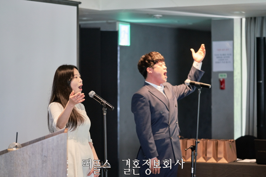 파티는 1부, 2부로 나눠서 진행되었으며 1부 첫 순서로는 테너 한지훈, 소프라노 차정은의 팝페라 공연이 있었습니다. 파티의 분위기에 걸맞는 Nella fantasia 와 뮤지컬 지킬 앤 하이드, 오페라 라트라비아타 축배의 노래를 노래해주셨습니다.