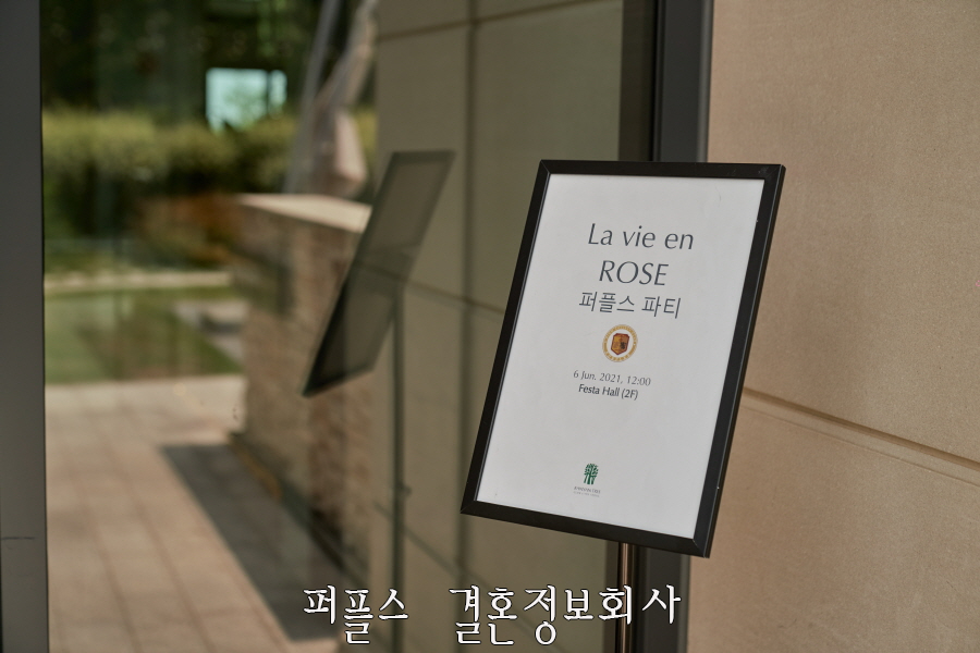 재혼정보회사 퍼플스 돌싱모임 파티는 매년 같은 장소에서 개최되고 있으나, 처음 참석하시는 분들을 위해 호텔 입구부터 여러 곳에 사이니지를 설치하여 회원님들이 쉽게 찾아오실 수 있도록 준비하였습니다.