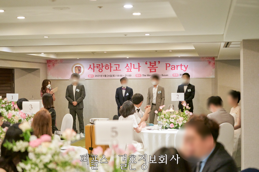 지난 4월 24일, 웨스틴 조선호텔 부산에서 다양한 직업군의 미혼남녀들이 참석한 퍼플스 부산 사교모임 파티 <사랑하고 싶나 봄:Private Party> 가 성황리에 개최되었습니다. 지난 1편에는 파티의 전체적인 분위기를 보여드렸다면 오늘 이 시간에는 부산 사교모임 파티를 즐기시는 회원님들의 모습을 생생하게 전해드리겠습니다.
