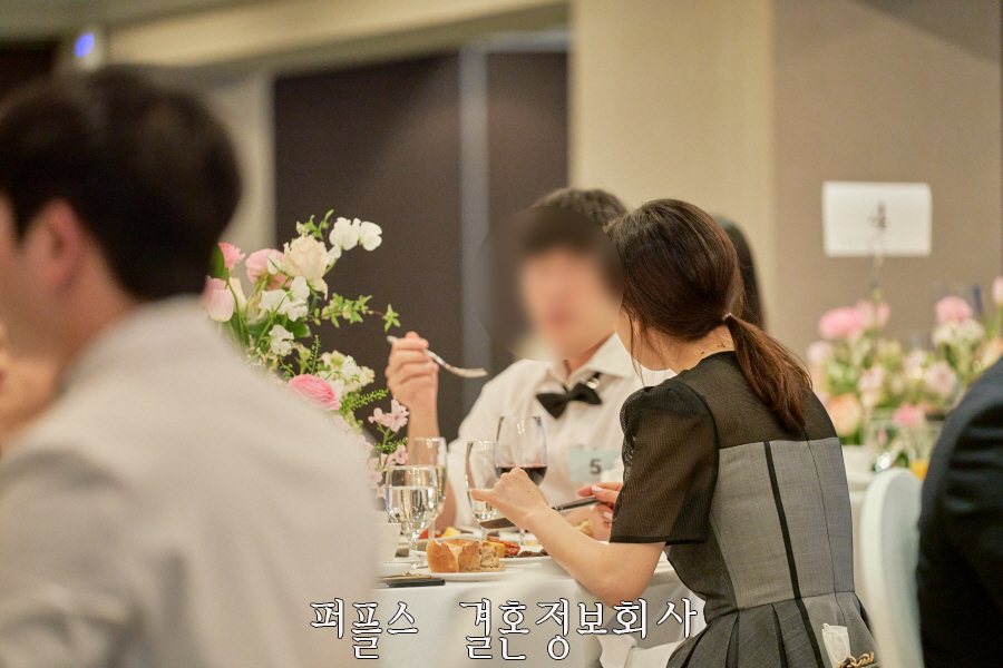 웨스틴 조선호텔과 퍼플스가 준비한 VIP 코스요리가 끝날 무렵, 회원님들은 와인과 디저트를 즐기시면서 같은 테이블에 앉은 이성과 활발하게 대화를 나누는 모습을 볼 수 있었습니다.