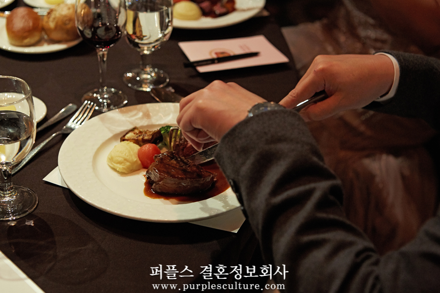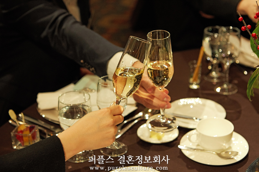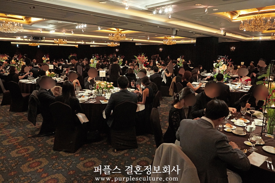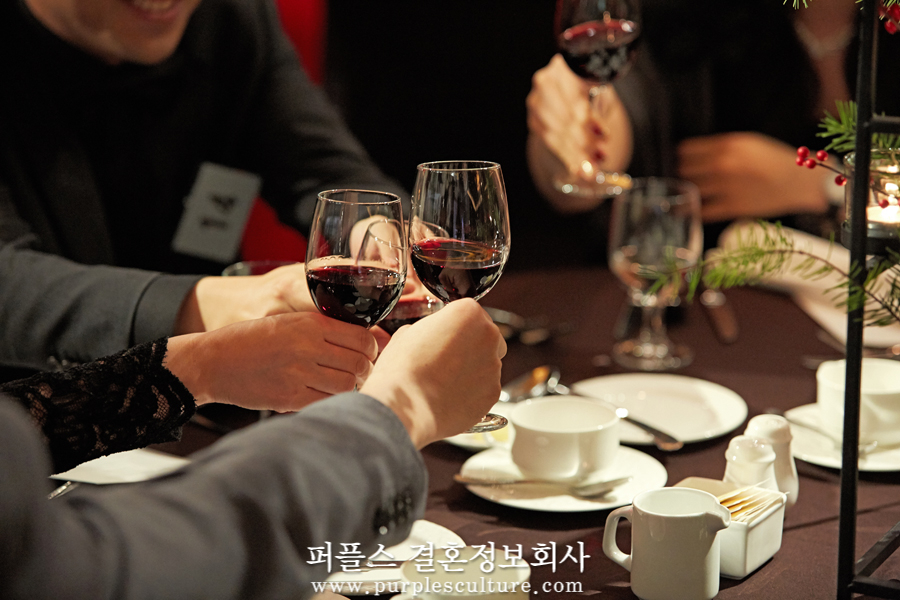 식사가 시작되니, 자연스럽게 대화를 나누시는 회원님들의 모습이 보였고, 어느새 잔을 부딪히며 화기애애한 분위기가 형성되었습니다. 오늘 퍼플스 사교모임에 참가하시는 분들은 모두 철저한 신원인증을 거쳐 참석하게 되었는데요. 남성 회원의 경우 의사, 변호사 등 명문대 출신 전문직, 대기업 종사자, 가업승계자 등이 참석하였으며, 여성 회원의 경우 의사, 약사, 공무원, 미인대회 출신, 전· 현직 모델 등이 인연을 찾기 위해 함께했습니다.