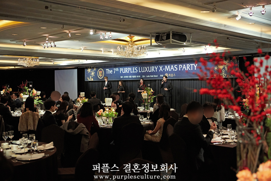 상류층결혼정보회사 퍼플스는 지난 12월 21일 '롯데호텔' 사파이어 볼룸(Sapphire Ballroom)에서 미혼남녀 200명이 참석하는 국내 최대 규모 사교모임인 '2019 럭셔리 크리스마스 파티'를 성공적으로 개최하였습니다.