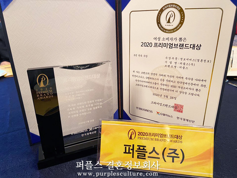 | 서울결혼정보회사 퍼플스, 6년 연속 브랜드 대상 수상 기념 이벤트 (0) | 2020.05.29 |