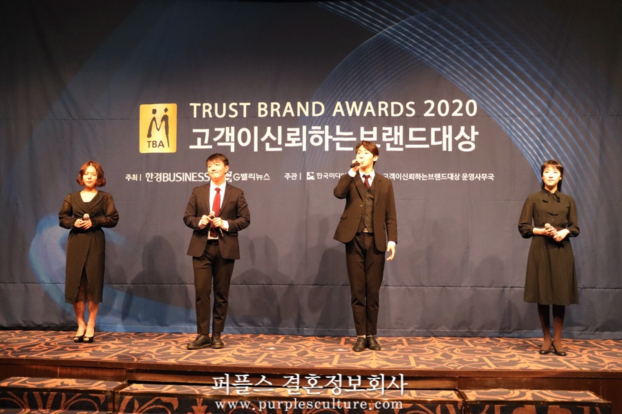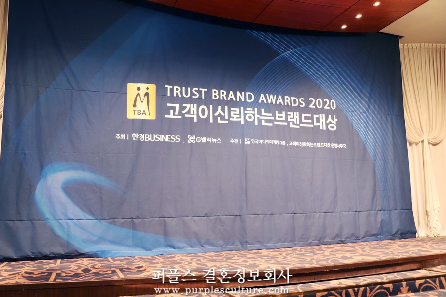 각 언론사의 객관성 높은 자료와 20세 이상의 회원 리서치 그리고 전문가의 엄격한 심사에 의해 선정되는 '고객이 신뢰하는 브랜드 대상'은 한경비즈니스와 G밸리뉴스가 주최하며 한국미디어마케팅그룹이 주관하는 진정성 있는 브랜드를 선별하는 어워드입니다. 올해 시상식에는 상류층결혼정보회사 퍼플스를 포함한 49개의 브랜드가 수상을 하게 되었습니다.