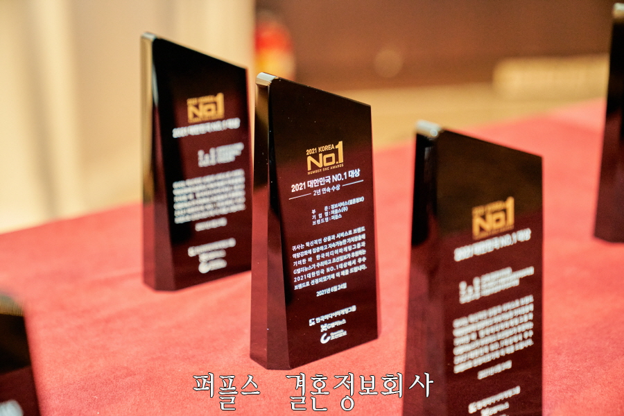 '2021 대한민국 No.1 대상'은 기업 경영 전략, 기업·브랜드 시스템, 기업의 관리, 경영 성과 등으로 나눠 엄격하고 공정한 심사에 의해 39개의 브랜드가 선정되었는데요. 결혼정보업계 중에서는 서울 결정사 퍼플스가 유일하게 수상하였으며, 군내 현존하는 언론사 중 가장 오래되고 저명한 조선일보가 후원하였기에 더욱 영광스러운 수상이었습니다.