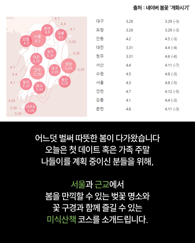 꽃 구경과 함께 즐길 수 있는 미식산책 코스를 소개드립니다.