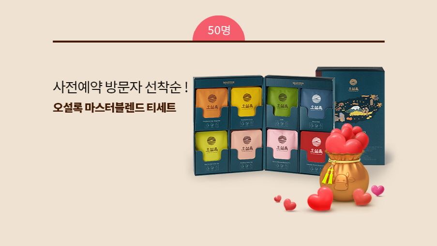 마지막으로 추가 상품이 준비되어 있는데요. 압구정결혼정보회사 퍼플스 사전예약 방문자 선착순 50명에게는 오설록 마스터블렌드 티세트를 증정합니다. 이 상품은 아쉽게도 퍼플스 부산지사, 대전지사, 대구지사, 광주지사를 제외한 압구정결혼정보회사 퍼플스 서울 본사에서만 적용된다는 점 참고 바랍니다.