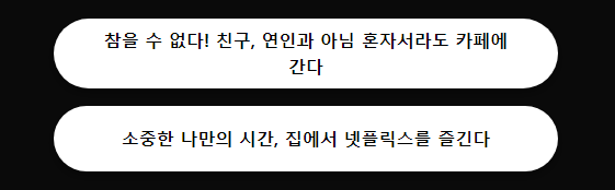 주말에 잡혀있던 약속이 갑자기 취소 되었을 경우 여러분들은 바로 약속을 다시 잡으시는 편인가요? 아니면 소중한 여러분 만의 시간을 즐기는 편이신가요? 이 또한 내향형, 외향형으로 질문의 답변이 나뉠 것으로 예상됩니다.