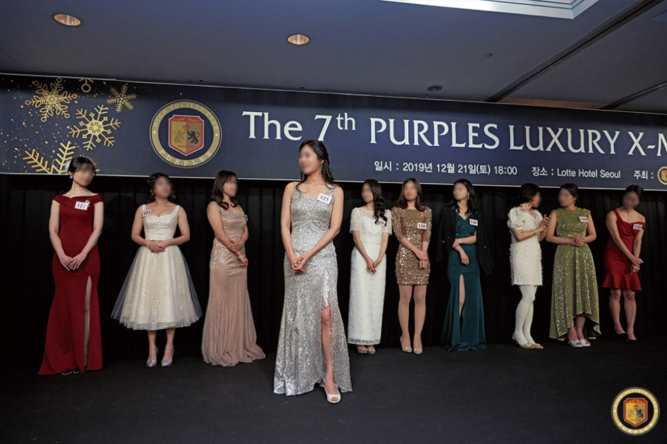 퍼플스가 개최하는 '2020 퍼플스 럭셔리 크리스마스 파티'는 최대 200명 규모의 와인파티로 다양한 직업군의 미혼남녀 분들이 참가할 예정입니다. 여성의 경우 CEO, 의사, 법조인, 정·재계 자녀, 자산가, 전·현직 모델, 미인대회 출신 등이 참석하며 남성은 의사, 변호사, 회계사, 약사, 자산가, 명문대 출신 대기업 및 공기업 종사자분들이 대거 참석합니다.