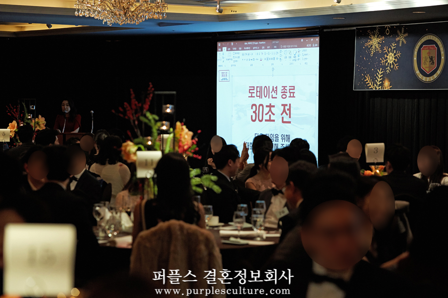 7년 연속 개최하고 있는 상류층결혼정보회사 퍼플스의 '럭셔리 크리스마스 파티' !! 벌써 마지막 후기가 찾아왔습니다. 200명의 싱글남녀가 참가하는 결혼정보업계 최대 규모 와인파티이다 보니, 총 3편에 나누어서 후기를 전해드리고 있는데요. 화려했던 마지막 순간을 전해드리겠습니다. 바로 가보실까요?