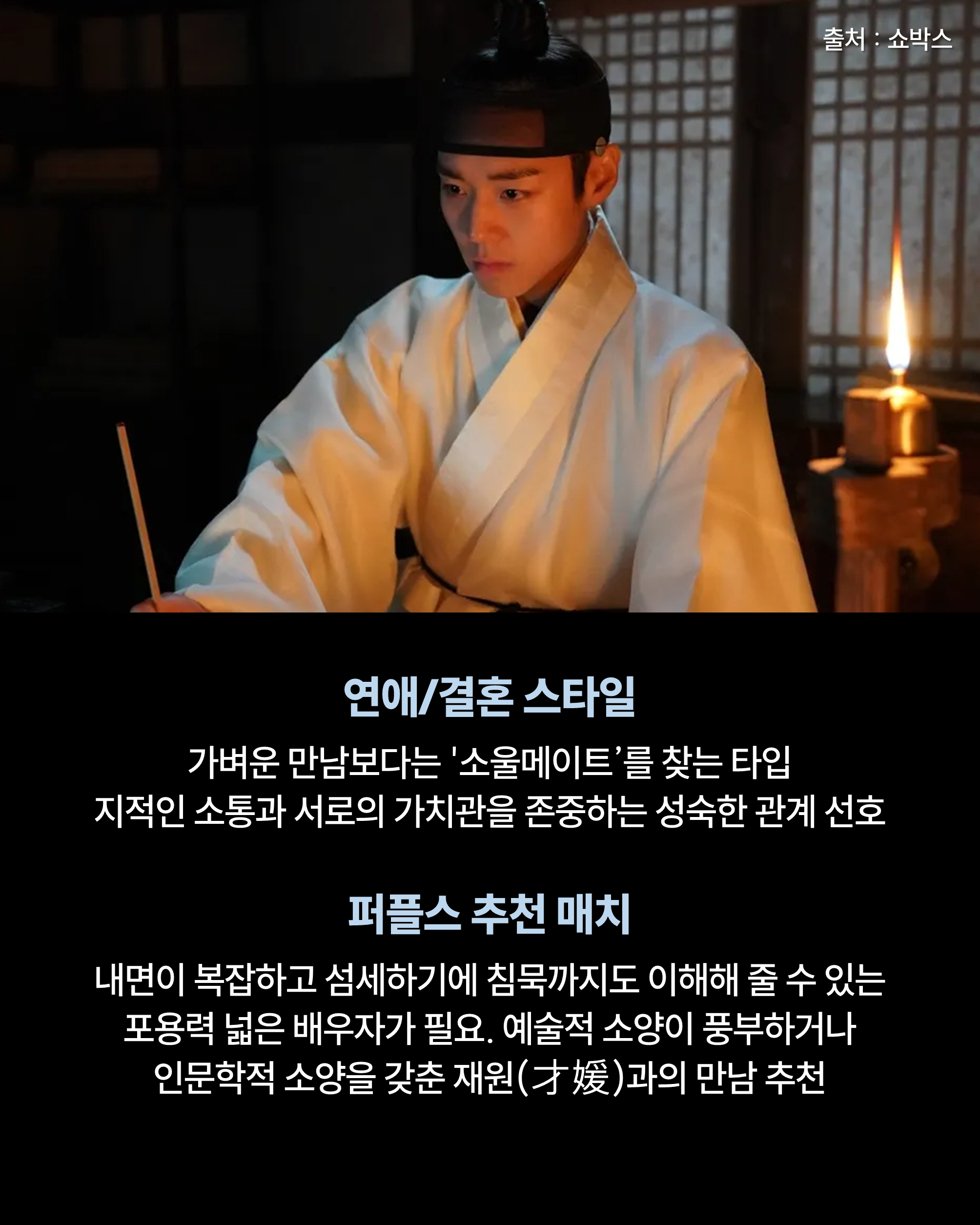 예술적 소양이 풍부하거나 인문학적 소양을 갖춘 재원과의 만남을 추천드립니다.