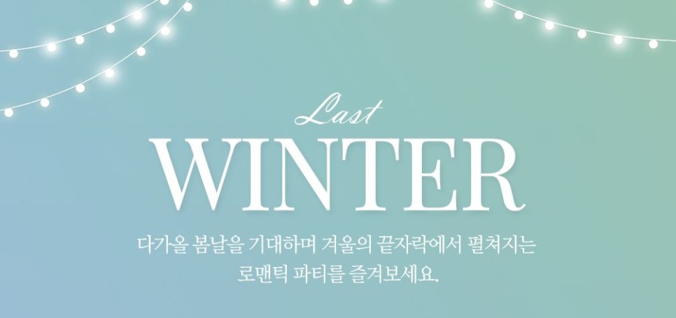 가끔 친구들도 만나고 일상생활도 문제없이 흘러가는데 이성에서 오는 외로움을 느낀다면 적극적으로 애인을 만드는 게 외로움 극복에 답입니다. 먼저 주변 지인들에게 소개팅 주선을 부탁할 수도 있고 앞서 말한 동호회, 모임을 가입할 수도 있습니다. 마지막으로 미팅파티가 있는데요. 미팅파티는 연애, 결혼을 희망하는 미혼남녀들이 모여 즐기는 파티로 다양한 이성들을 한자리에서 만나 볼 수 있다는 장점이 있습니다. 현재 서울에서 신청 중인 미팅파티를 소개해드리자면 2월 27일, 서울 특급호텔에서 열리는 <LAST WINTER> 파티가 있습니다. 자세한 사항은 아래의 이미지를 확인해 주시길 바랍니다.