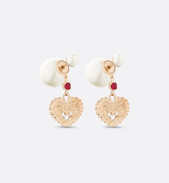 디올 반다나 라인의 다양한 아이템과 매치하기 좋은 모던하고 우아한 귀걸이입니다. 데이트 자리와 너무 잘 어울릴 것 같은 이 귀걸이는 럭셔리한 화이트 진주가 매력적이며 40대 이상의 여성에게도 잘 어울리는 디자인입니다. 레드 크리스탈로 만든 하트 블록 참이 달려 있어, 너무 무거운 느낌을 주지 않으며 여성스러운 의상이 잘 어울리는 이성에게 선물해 보세요.