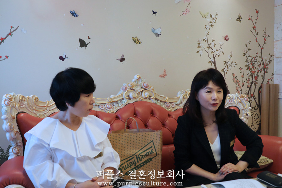 결혼정보회사 퍼플스의 유튜브 촬영은 방역 및 소독이 완료된 장소에서 코로나 바이러스 예방 수칙을 철저히 준수하여 진행되었으며, 화기애애한 분위기 속에서 홍윤미 커플매니저와 공혜진 커플매니저는 준비한 전문직, 재벌가결혼 관련 콘텐츠를 전달하였습니다. 또한, 준비한 유튜브 콘텐츠가 결혼정보회사 가입을 고민하고 계신 분들께 조금이나마 도움이 되었으면 좋겠다는 소감을 전하였습니다.