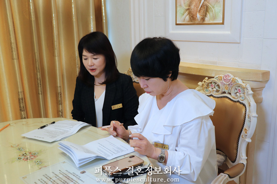 상류층 결혼정보업체 퍼플스가 준비한 유튜브인 만큼 전문직, 재벌가결혼 등에 관해 최대한 자세하고 정확한 정보를 전달하기 위해 전체적인 흐름을 숙지하고 합을 맞춰보고 계신데요. 첫 촬영이지만 완성도 있는 영상을 선보이기 위해 노력을 아끼지 않는 두 분입니다.