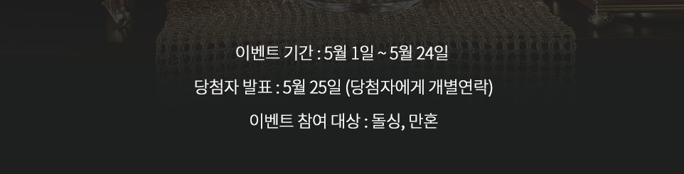 이벤트 참여 기간으로는 5월 1일 ~ 5월 24일이며, 당첨자 발표는 5월 25일, 당첨자에게 개별 연락드릴 예정입니다. 무료 파티 참가권을 획득한 고객은 학력, 재직, 결혼 유무 등 공식 서류를 통한 신원인증 절차를 완료 후 재혼전문결혼정보회사 퍼플스 파티 참석이 가능하며, 본 이벤트는 오로지 돌싱, 만혼 회원들만이 참여가 가능하다는 점 참고 바랍니다.