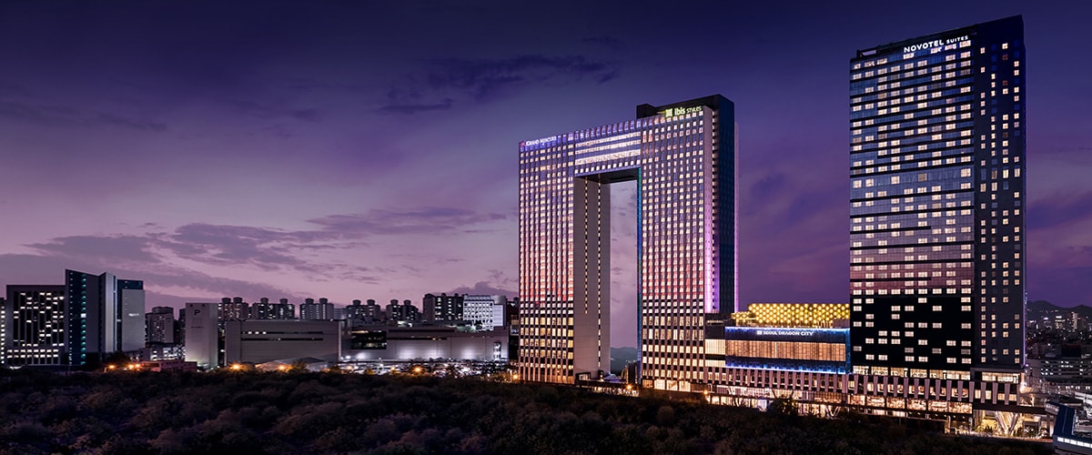 서울의 중심, 용산에 위치한 서울드래곤시티는 1,700개 객실 규모를 갖춘 아시아 최대 · 국내 최초 호텔 플렉스입니다. 고층 타워 3개 동이 이어져 용의 모양을 형상화한 서울드래곤시티는 그랜드 머큐어와 노보텔 스위트, 노보텔과 이비스 스타일 등 프랑스 아코르호텔 그룹의 4개 브랜드로 구성되어 있습니다. 특히, 31층에 위치한 스카이킹덤은 2개의 고층 타워 동을 이어주는 엔터테인먼트 시설로 킹스 베케이션과 더 리본, 스파이, 스카이 비치 등 다양한 콘셉트의 라운지 바와 파티룸으로 이루어져있어 중매결혼을 앞둔 커플들의 호캉스를 위한 충분한 즐길 거리를 선사하고 있습니다.