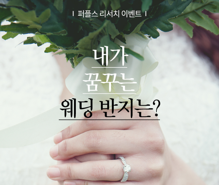 예비 신랑, 신부 분들이 예물을 맞추기 위해 찾는 백화점 예물관은 웨딩시즌이 시작되기 전부터 활발히 운영된다고 하며 그중에서도 미혼 여성분들에게 가장 인기가 많은 웨딩 반지 브랜드들은 늘 문전성시를 이룬다고 합니다. 따라서 이번 8월 퍼플스에서는 웨딩 준비 시즌을 맞이하여 결혼반지 관련 리서치 이벤트를 준비하였으니 미혼 남녀 분들이라면 주목해 주시기 바랍니다.
