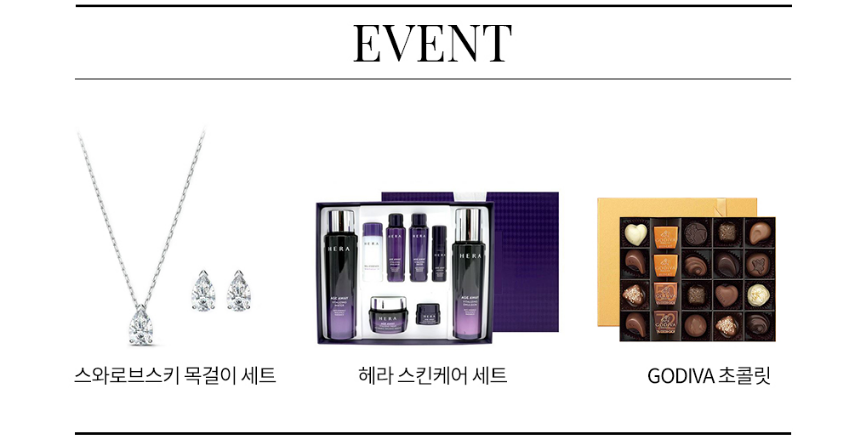 직장인 모임을 주선하는 퍼플스가 추첨을 통해 제공할 예정인 상품은 오스트리아 명품 크리스털 브랜드 '스와로브스키'의 목걸이 세트와 핫한 뷰티 브랜드인 '헤라'의 스킨케어 세트 그리고 프리미엄 벨기에 초콜릿 'GODIVA'입니다. 모두 퍼플스 리서치 이벤트 참여자분들에 한해 제공할 예정이니 많은 관심 바랍니다.