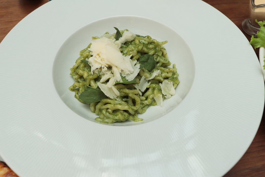 청담동 퀸즈파크에서 가장 유명한 메뉴로, 신선한 올리브유와 생바질, 그리고 고소한 잣이 어우러지는 파스타입니다.