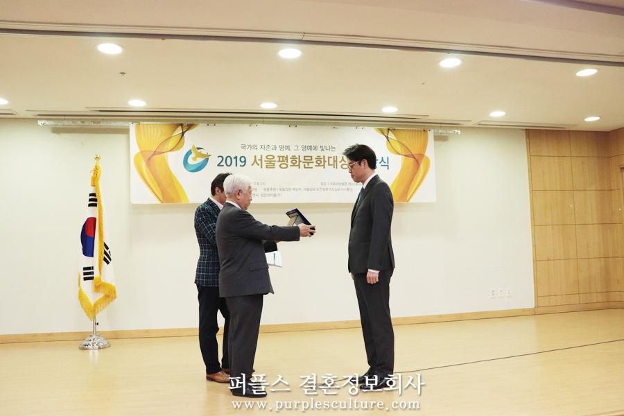 상류층 결혼정보회사 퍼플스 김현중 대표가 지난 12월 6일, ‘2019 서울평화문화대상’에서 외교통일위원회위원장부문을 수상하는 영광을 안았습니다. '서울평화문화대상'은 우리나라의 각 분야에서 커다란 공적을 남긴 이에게 주는 가장 영예롭고 권위 있는 상이라고 할 수 있는데요. 오늘 이 시간에는 시상식의 현장을 전해드리겠습니다.