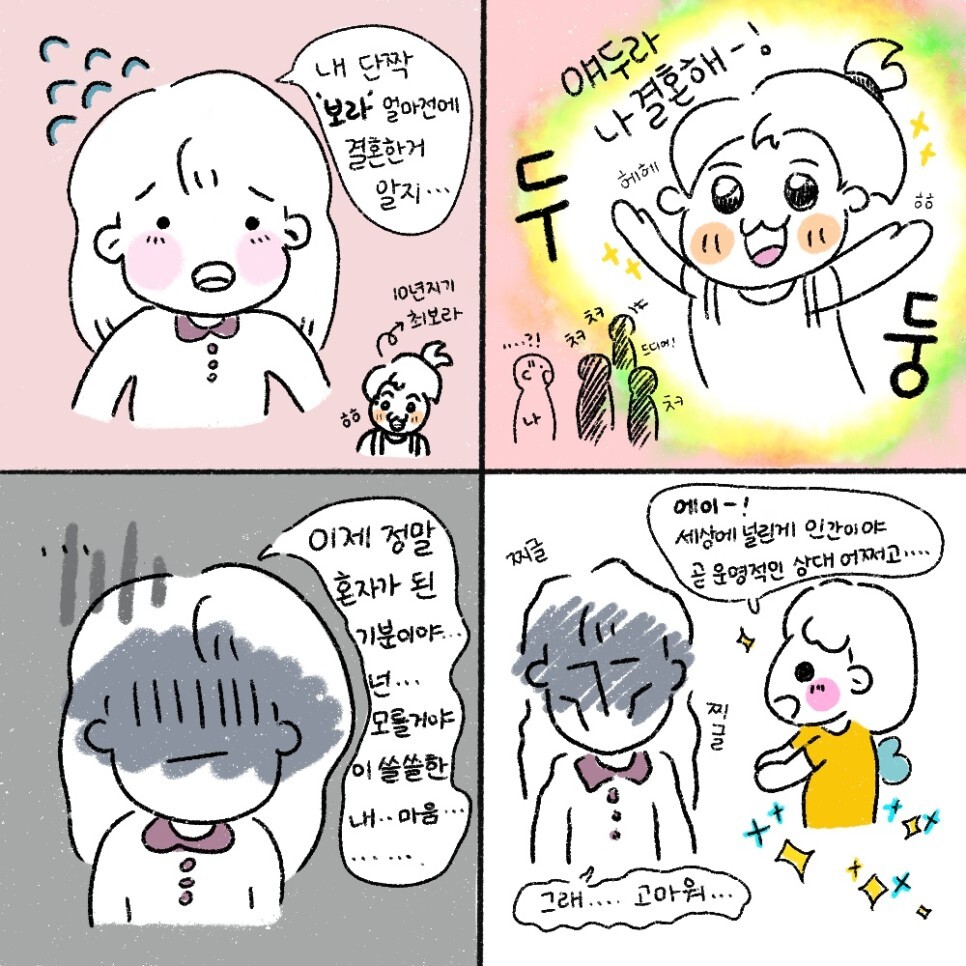 퍼플스 대학생 서포터즈 1조의 웹툰을 간단히 설명드리자면, 매일 반복된 일상을 살아가던 직장인 여성 '보라'가 우연히 퍼플스 미팅파티에 참여하여 새로운 인연을 만나게 되는 스토리입니다. 귀여운 그림체와 스토리로 완성도 높은 웹툰 콘텐츠를 제작한 팀입니다.