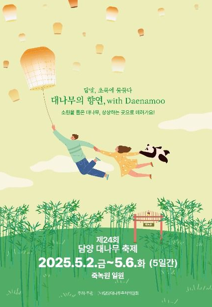 - 담양 대나무 축제 (죽녹원 일원 야외무대), (2025.05.02 금 ~2025.05.06 화 ),(죽녹원 입장료- 3,000원,축제장 무료)