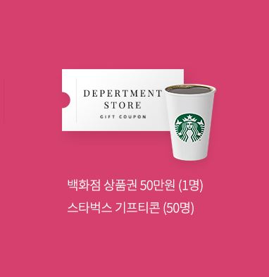 이벤트 상품으로는 백화점 상품권 50만 원(1명) 과 스타벅스 기프티콘 (50명)이 증정되며 본 이벤트는 남녀노소, 나이 제한 無!! 누구나 참여할 수 있기 때문에 많은 참여 바랍니다.