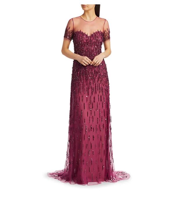 노출이 있는 드레스가 아닌 단아하지만 돋보일 수 있는 드레스를 원하시는 분들에게 추천드립니다. 반팔로 이루어져 있어 체형보정 효과를 볼 수 있으며 상체의 반짝이는 비즈는 호텔 연말파티의 주인공처럼 화려하게 빛날 것입니다. 한가지 팁을 드리자면 비즈가 많은 드레스는 목걸이나 귀걸이가 아닌 헤어 악세사리를 연출하시면 더욱 고급스러운 느낌을 줄 수 있을 것입니다.