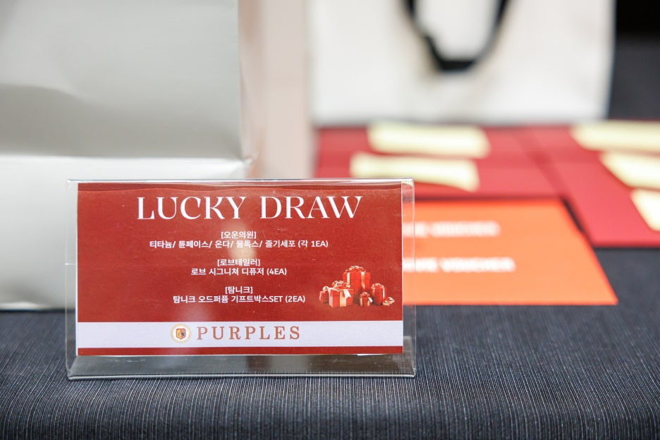 이번 협찬에는 프리미엄 피부과 오운의원, 클래식 테일러링 브랜드 로브테일러, 감각적인 향기 브랜드 탐니크 등 각 분야를 대표하는 브랜드들이 함께해 퍼플스 파티의 품격을 한층 더 높여주었습니다.