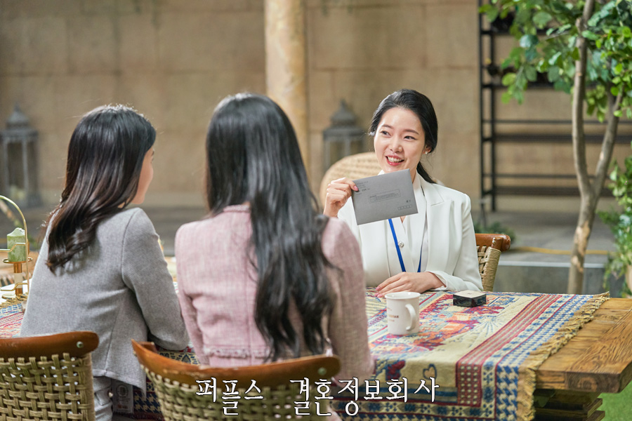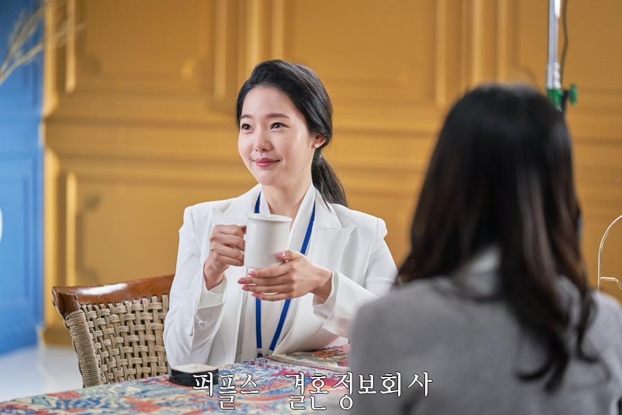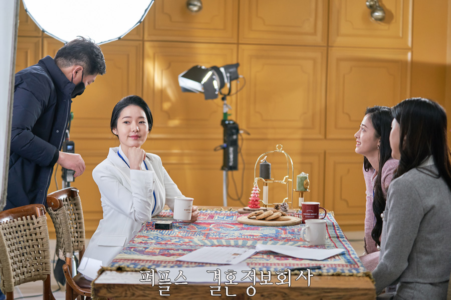 30대직장인소개팅을 주선하는 퍼플스 CF '카페' 편은 따뜻한 분위기의 세트장에서 촬영이 이뤄졌으며, 직장인 여성과 같은 느낌을 주기 위해 출연자들은 모두 단정하면서 깔끔한 의상을 착용하였습니다.